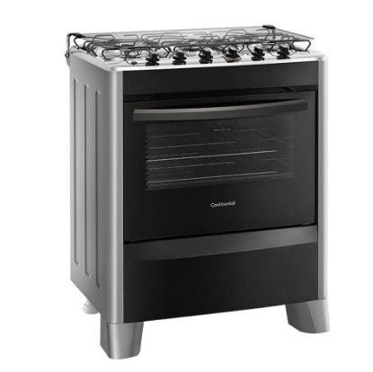 Resistente e muito econômico, o Fogão 5 Bocas Continental FC5CS vai te impressionar, com a sua beleza e funcionalidades! O Frontal Black dele, deixa um acabamento, com Design moderno, diferenciado e Robusto. Além de ter a tampa frontal, em Vidro, o que proporciona melhor visibilidade do interior do forno, garantindo mais comodidade para acompanhar, em tempo real, o andamento e o tempo de preparo de suas receitas! E detalhe, possui Forno de 91 Litros, mais espaço para o preparo das receitas Seu sistema de Grades Duplas com Mesa Compartimentada impede que os líquidos derramados se espalhem em sua superfície, auxiliando na manutenção do fogão e mantendo-o sempre limpo, já que o forno, possui cavidade esmaltada com acabamento Fácil Limpeza, facilita a limpeza e remoção de resíduos no interior do produto. Além disso, você conta com máxima potência e robustez com, 2 Queimadores semirrápidos e mais outros 2 queimadores, rápidos, que aceleram o preparo das receitas, garantindo mais agilidade ao seu dia a dia. Sem contar o Queimador Tripla-chama, Chama mais potente que proporciona maior rapidez no preparo dos alimentos.