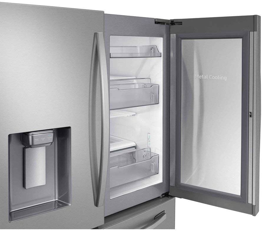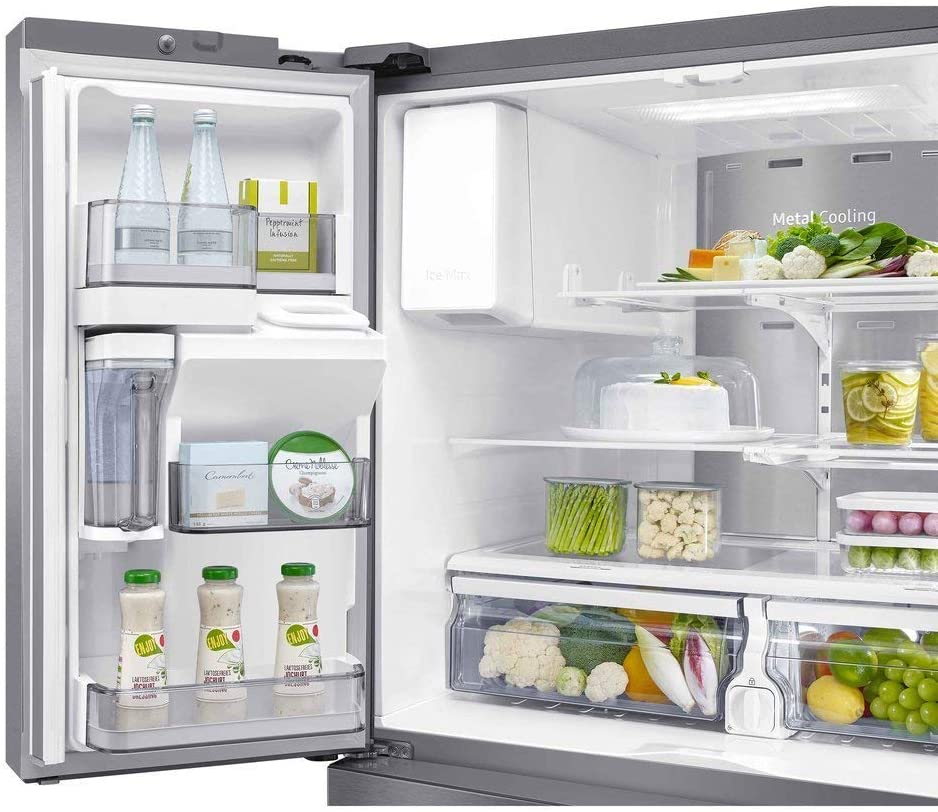 Geladeira Samsung French Door 501 Litros Inox 110V RF22R7351SR/AZ Flexibilidade com 4 modos de resfriamento FlexZone com um divisor inteligente Armazene alimentos e bebidas diferentes em temperaturas ideais para manter o frescor e o sabor. A tecnologia FlexZone oferece quatro configurações ideais para preservar carnes e peixes, delicatessen, vinhos ou outras bebidas. Um divisor inteligente pode ser travado para organizar itens de forma eficiente. Alimentos naturais, saborosos e frescos por mais tempo Twin Cooling Plus Garanta que seus alimentos estejam frescos por mais tempo*. O Twin Cooling Plus otimiza a temperatura e a umidade da geladeira e do freezer com sistemas de resfriamento independentes. Ele preserva os alimentos em ótimas condições e protege seu sabor e aroma originais evitando a mistura de odores. Portas com design elegante e minimalista para um visual moderno Design moderno Aproveite um design elegante e simples. As portas Sleek Edge têm estilo sofisticado e atemporal valorizado por um dispenser de água e gelo minimalista e puxadores New Edge. Esses elementos combinam de forma natural e harmoniosa com qualquer cozinha. Acabamento resistente a impressões digitais À prova de manchas Ajuda a reduzir manchas para manter uma aparência limpa todos os dias. Água refrigerada e saborizada para levar à mesa Jarra com enchimento automático e infusor Refresque-se imediatamente com uma água gelada sem precisar esperar que ela esfrie. A exclusiva Jarra é automaticamente completada com água filtrada ao colocá-la dentro da geladeira. Com a opção de infusão, você pode adicionar frutas ou ervas para criar deliciosas bebidas saborizadas. Faça gelo rapidamente Ice Max O Ice Max produz até 4,5 kg de gelo por dia e armazena até 1,9 kg de gelo de uma vez, assim você sempre terá gelo pronto! Com seu design fino e compacto, ele ocupa menos espaço para você guardar mais alimentos Abra as gavetas com muito mais facilidade Puxadores EZ-Open Abra as gavetas do meio e do freez